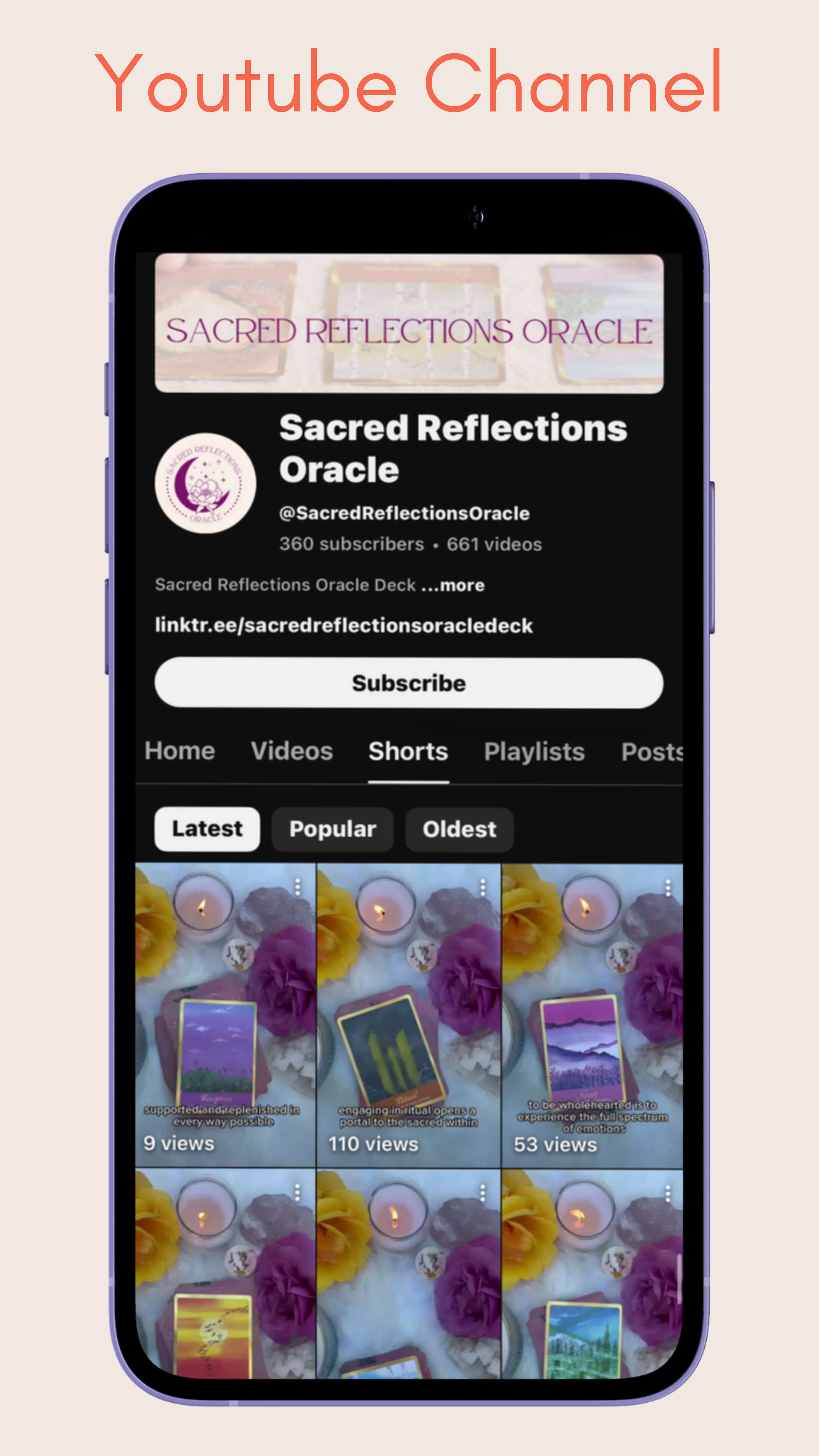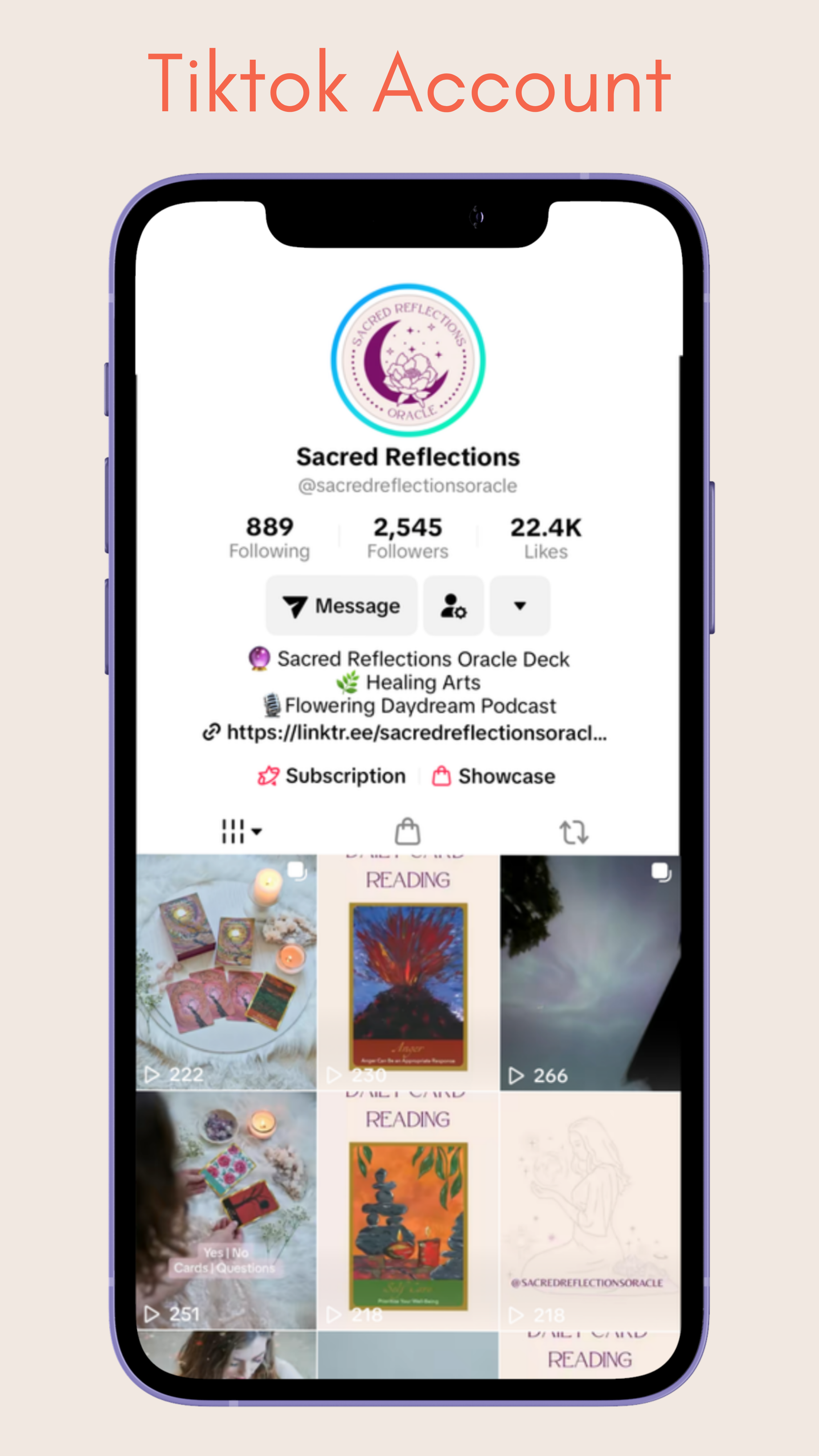 Short-form video content was a key part of our marketing strategy. By utilizing platforms like TikTok, Youtube Shorts and Instagram Reels, we effectively reached new audiences through the algorithm, which promotes engaging, interest-based content. These platforms are home to communities that closely match our target demographic, individuals interested in mindfulness, spirituality, and creative self-expression, making them ideal for sharing and promoting our oracle deck.